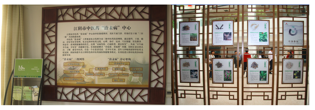 【宣傳知識和介紹方法】主要是宣傳和介紹中醫藥的基礎知識、養生保健方法,以及中醫藥防治常見病、多發病的方法,常用中藥的識別和功效、中藥煎煮常識等。可以通過招貼畫、保健處方、櫥窗展柜、實物、觸摸屏、視頻網絡來表達。